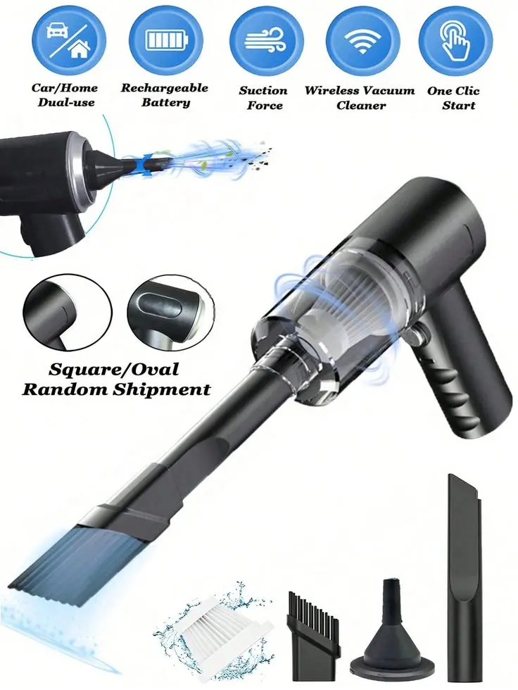 Incluye filtros HEPA lavables y reutilizables, ideales para personas alérgicas, y un depósito de 600 mL sin bolsa, con vaciado fácil sin contacto con la suciedad. Su batería de larga duración y carga rápida por USB ofrece autonomía suficiente para limpiezas completas, mientras que su diseño compacto y ligero (600 g) facilita su transporte y almacenamiento. Además, viene con accesorios multifunción para limpiar teclados, tapizados, componentes electrónicos y áreas de difícil acceso. Su diseño elegante y ergonómico, junto con el uso de materiales premium como ABS reforzado, la convierten en una herramienta práctica y moderna para mantener el auto impecable.